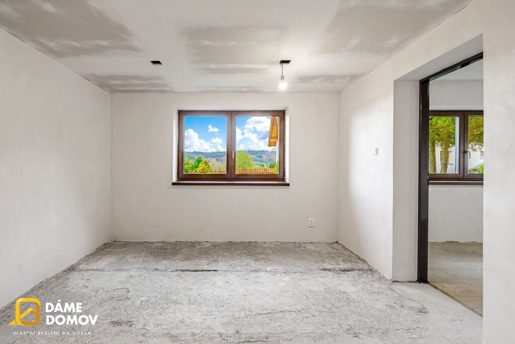 Nabízíme rodinný dům - chalupu, nyní v dispozici čtyřech místností, chodby, koupelny a technického zázemí o podlahové ploše 86 m² na pozemku o výměře 2 245 m².