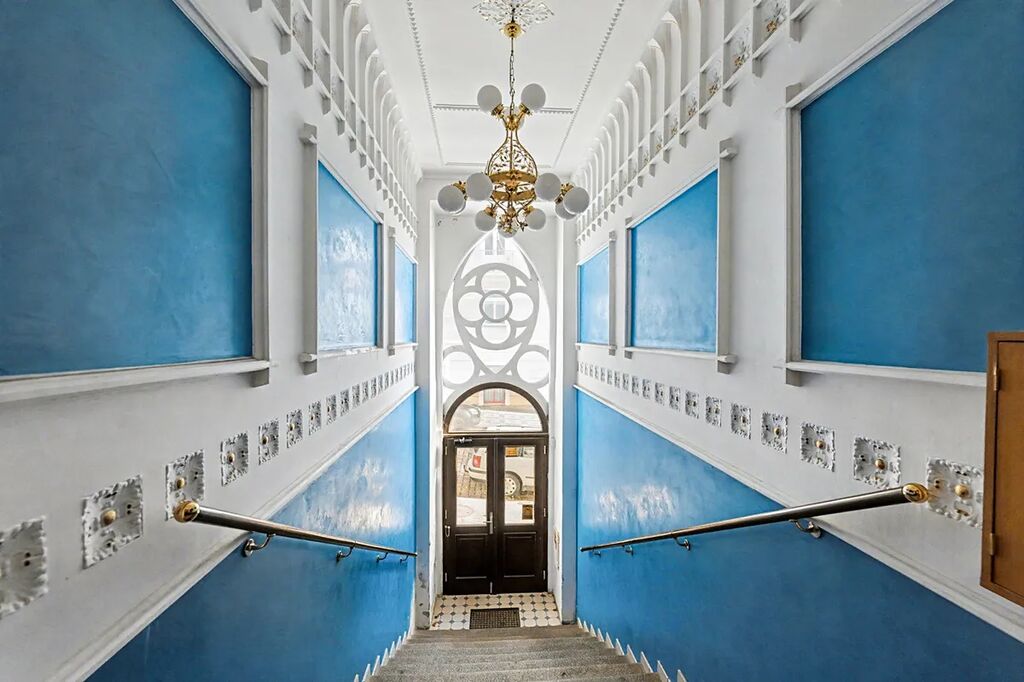 Dům je skutečný architektonický klenot – elegantní secesní stavba z konce 19. století prošla pečlivou rekonstrukcí a je ve výborném technickém stavu. Společné prostory jsou reprezentativní a dům má výtah, který potěší každého, kdo někdy nesl nákup nebo dětský kočárek. Měsíční poplatky činí 4.627 Kč.