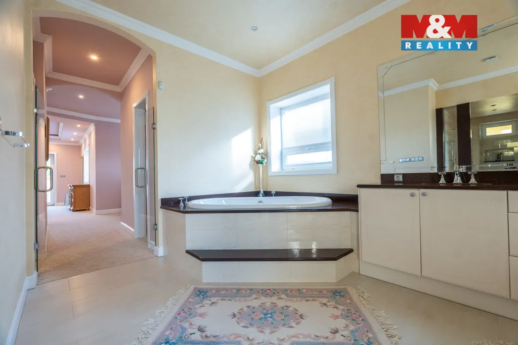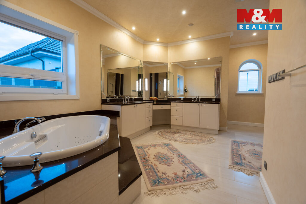 Hledáte dům, který spojuje eleganci, pohodlí a výjimečné místo k životu pouze 40 minut jízdy od Prahy? Tento jedinečný rodinný dům v americkém stylu o dispozici 6+KK s užitnou plochou 429 m² stojí na pozemku o rozloze 1 694 m² v jedné z nejatraktivnější části Loun s dechberoucím výhledem na České středohoří. Dům vás osloví velkorysým prostorem, nadčasovým designem a důrazem na detail. Nabízí tři pokoje pro hosty, každý s vlastní šatnou a koupelnou, obývací pokoj s barem a jídelním koutem, prostornou kuchyň se spíží, pracovnu, samostatné WC a hlavní ložnici s luxusní koupelnou. Na zahradě se můžete vykoupat v bazénu se slanou vodou. Součástí domu jsou dvě garáže, podlahové vytápění, klimatizace, centrální ozvučení a kamerový systém. Přijďte se přesvědčit o výjimečnosti tohoto domu a domluvte si prohlídku, během níž vám představíme vše, co tento domov nabízí.