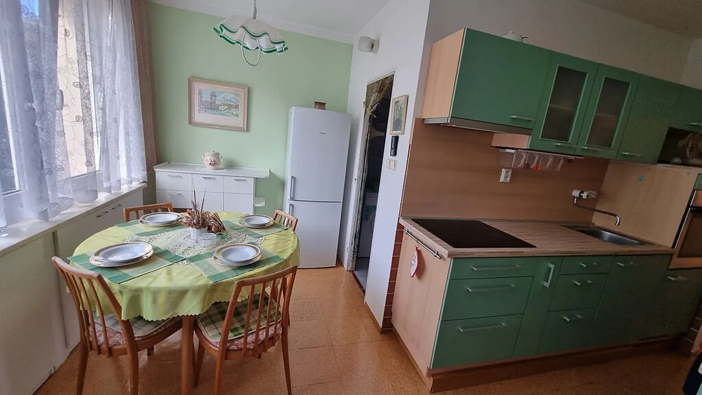 Byt má velkou vstupní halu s vestavěnou skříní. V kuchyni je kuchyňská linka na míru zn. Sykora včetně vestavných spotřebičů – elektrická varná deska, horkovzdušná trouba a digestoř, a volně stojící mikrovlnná trouba a lednice.