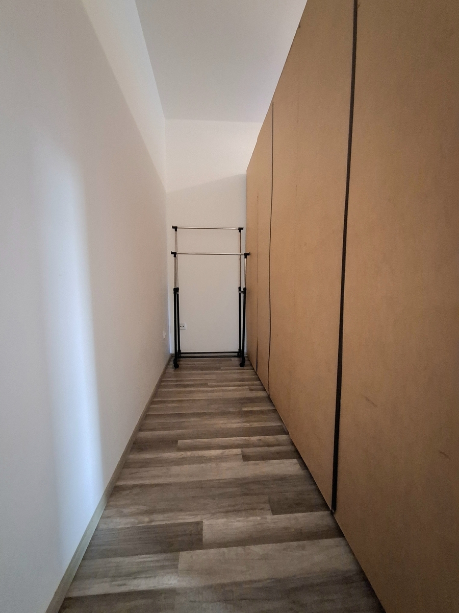 A má navíc má chytrou vychytávku: za skříní v ložnici se nachází skrytý úložný prostor ideální na sezónní věci jiné věci.