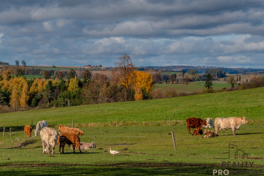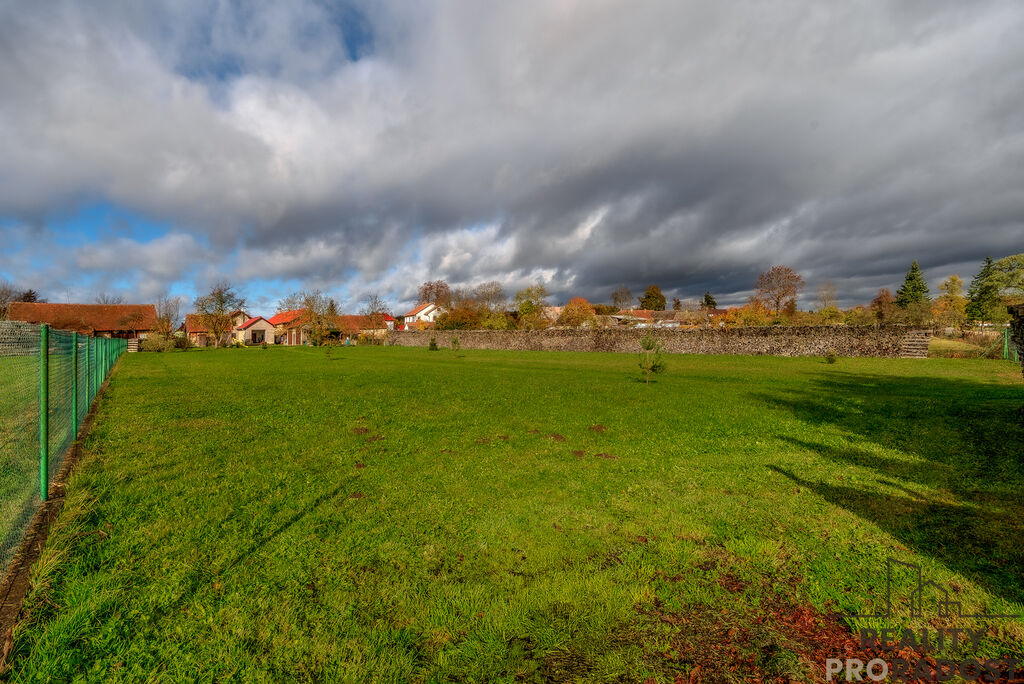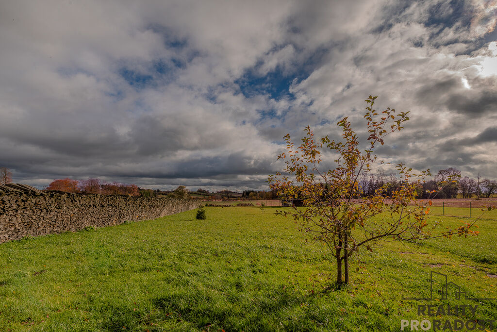 Součástí prodeje je také pole za domem o celkové ploše 12 150 m². Můžete jej využít pro sebe, propachtovat, nebo i prodat – případného kupce mám připraveného. Celková výměra všech pozemků je 16 331 m², z toho pozemky přímo u domu mají 4 181 m².