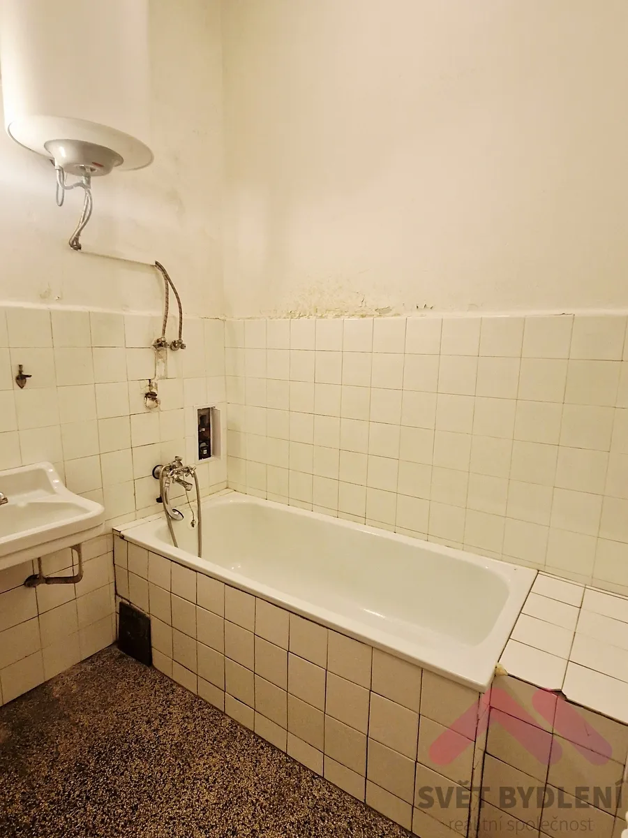 Koupelna s vanou. Topení je zajištěno plynovými WAW.