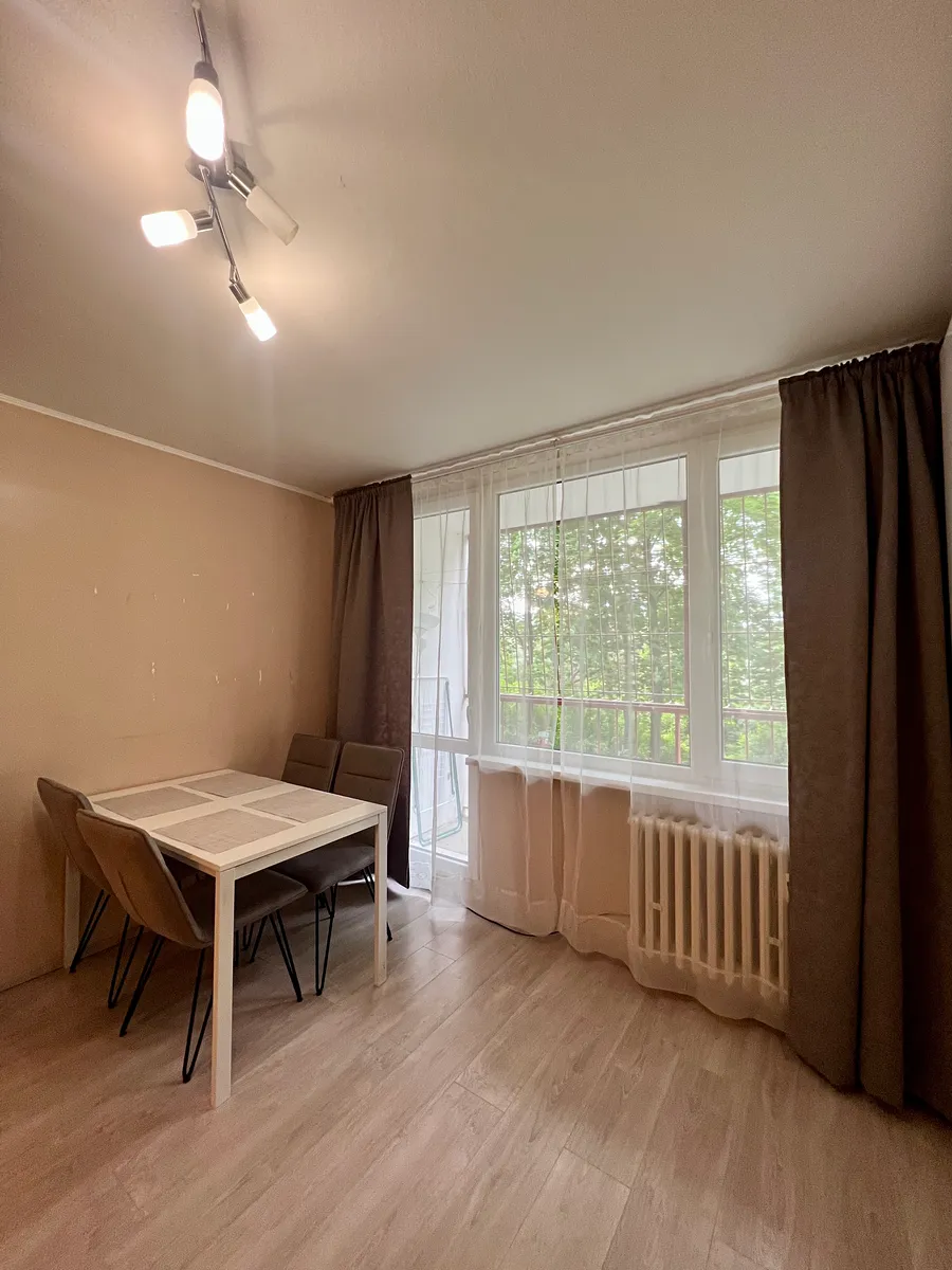 Byt prošel částečnou rekonstrukcí – má novou kuchyňskou linku, koupelnu a podlahy. Díky velkým oknům je interiér krásně prosvětlený a působí velmi otevřeně. Stačí už jen vymalovat dle vlastních představ a vytvořit si tak útulný domov přesně podle svého.
