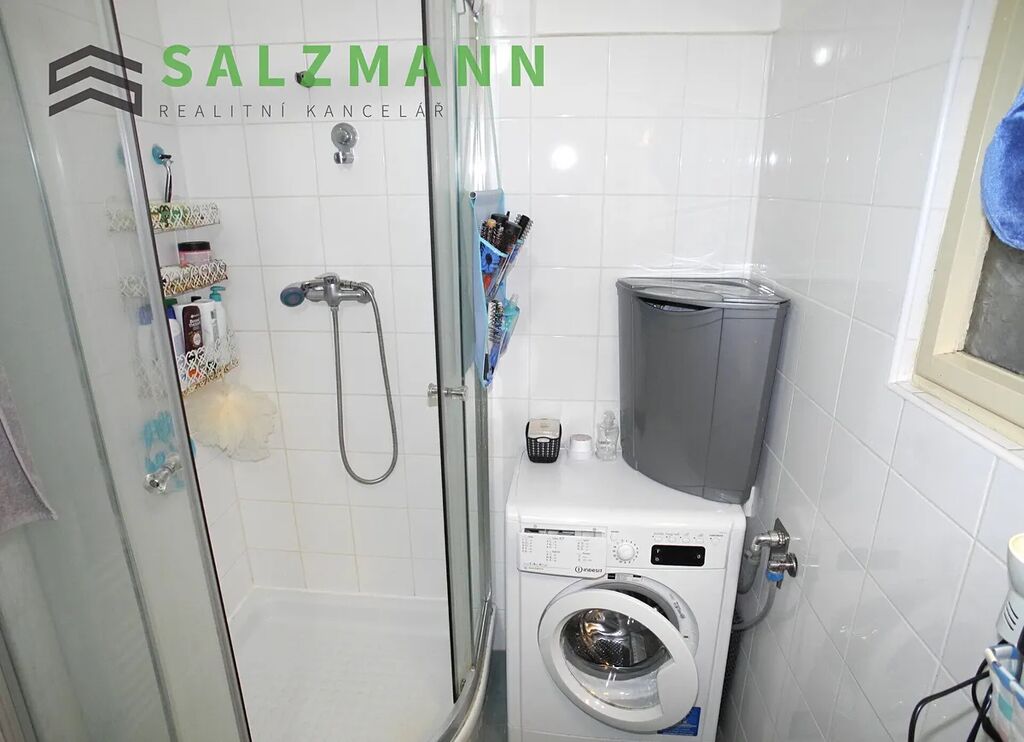 - koupelna – cca 3m2, sprchový kout, umyvadlo, otopný žebřík, místo na pračku