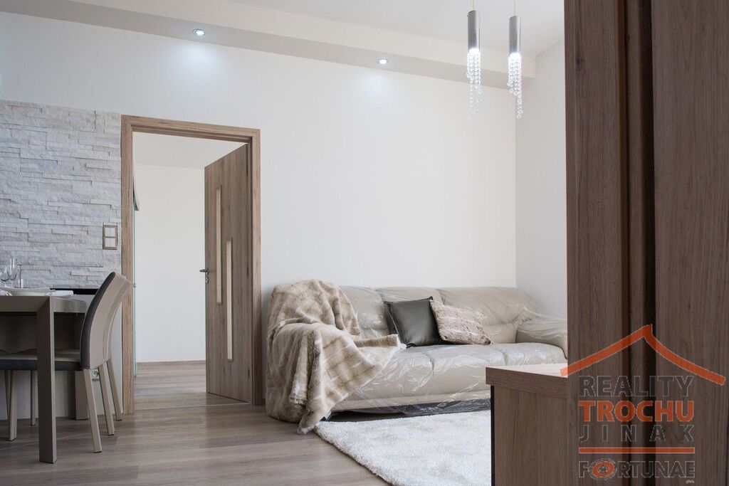 Vybavení bytu: myčka na nádobí, el. varná deska, el. a mikrovlnná trouba, lednice s mrazákem, digestoř, jídelní stůl + 4 židle, vestavěná skříň v ložnici, pohovka v obývacím pokoji.