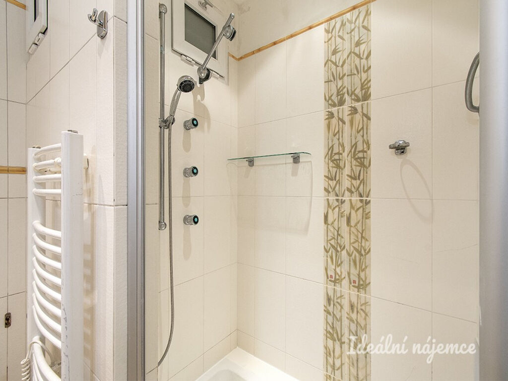 Byt se nabízí částečně nevybavený. Kuchyně disponuje lednicí, myčkou, elektrickou troubou, varnou deskou a digestoří. V koupelně sprchový kout, umyvadlo a pračka.