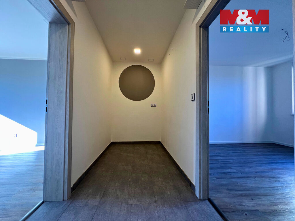 Dispozice bytu je praktická – na prostorné chodbě najdete velkou vestavěnou skříň a místo, kde lze v případě potřeby umístit i postel. Kuchyně je vybavená vestavěnými spotřebiči, v koupelně pak najdete sprchový kout a přípravu na pračku, toaleta je samostatná. Dva neprůchozí pokoje zajišťují dostatek soukromí a klidu.