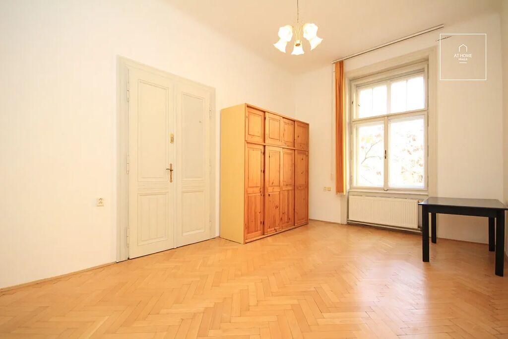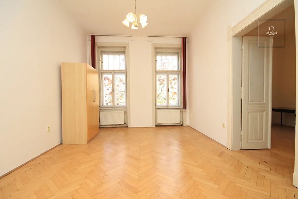 Hezký, nezařízený byt 2+1 v prvním patře udržovaného klasického činžovního domu na Vinohradech, Praha 2 - Vinohrady, jeden blok od parku Grébovka. 71m2: předsíň, obývací pokoj, ložnice - propojeny dvoukřídlými dveřmi, ale každá místnost má i svůj vlastní vstup z předsíně. Samostatně kuchyně plně vybavená spotřebiči. Koupelna s pračkou a sprchovým koutem. Toaleta je samostatně. Komora. Bezpečnostní dveře, bojler na ohřev vody, topení centrální v domě, možnost využití optického kabelu. Oblíbený park Grébovka je za rohem. Dům se nachází v klidné části Vinohrad, nicméně 5 minut pěšky na tramvaj, případně kousek na metro A Náměstí Míru. Poplatky za služby v domě 3.000,-Kč(včetně topení) první osoba/měsíc + 700,-Kč/měs každá další osoba + spotřeba elektřiny v bytě.