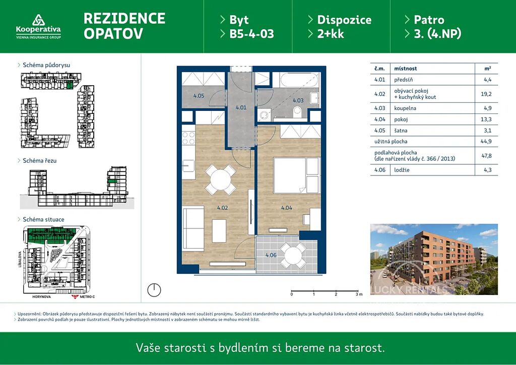 Projekt Rezidence Opatov představuje unikátní nabídku širokého portfolia nájemních bytových jednotek, situovaných v etablované městské lokalitě Prahy 4. Projekt disponuje celkem 156 bytovými jednotkami a je zde možnost vybrat si přesně byt odpovídající Vašim představám.