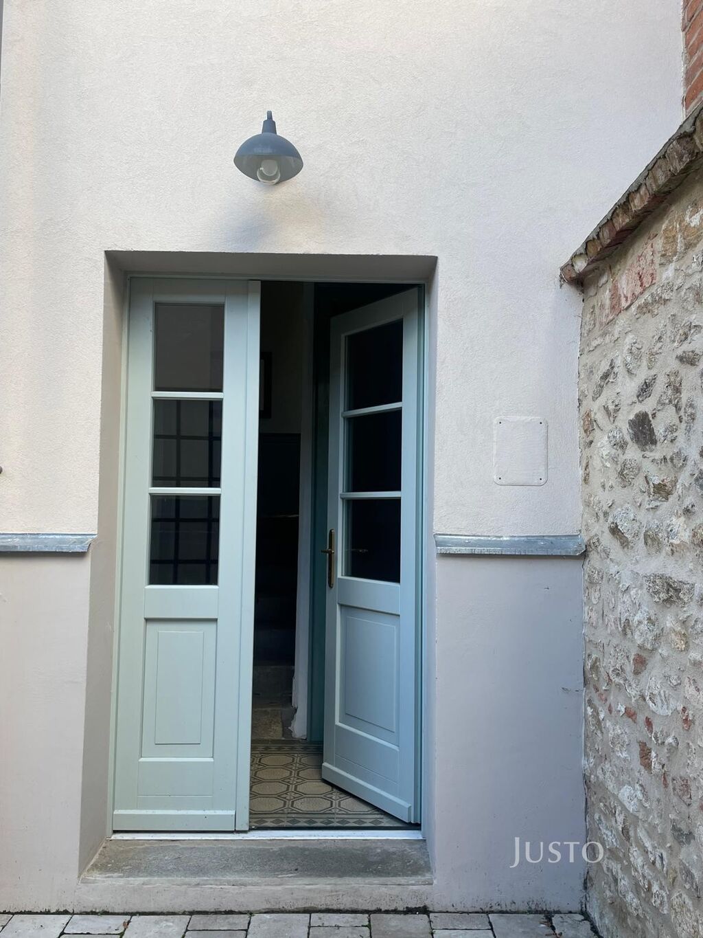 Charakter bydlení podtrhují velkorysé repliky původních prvorepublikových dveří, dřevěná podlaha, dobová koupelna se separátním WC i nová kuchyňská linka s vestavnými spotřebiči.