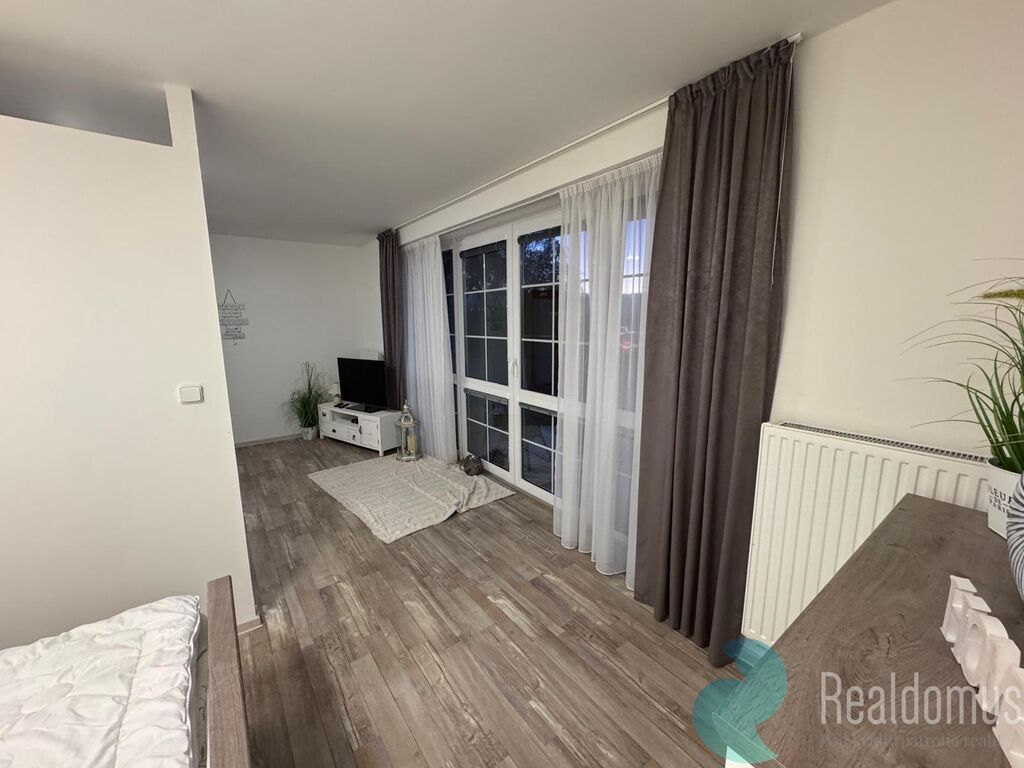 Byt je kompletně vybavený a nabízí moderní kuchyňskou linku s vestavěnými spotřebiči, jídelní kout, útulný obývací pokoj, prostornou ložnici s dostatkem úložných prostor a koupelnu se sprchovým koutem.