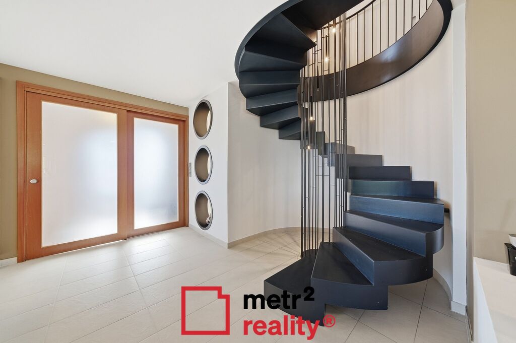 Do podkroví vás zavede kruhové ocelové vřetenové schodiště s průměrem cca 2150 mm.