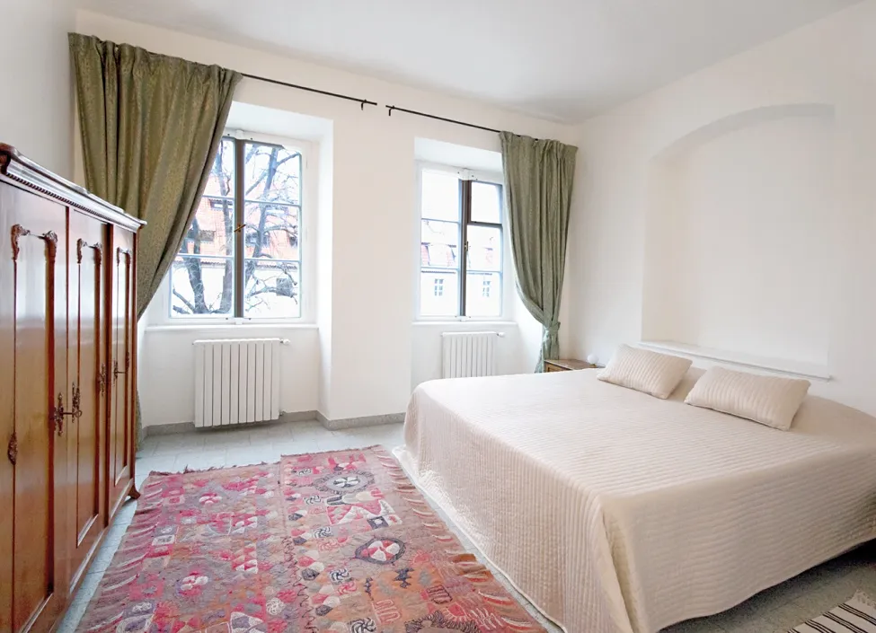 Plně vybavený byt o dispozici 3+kk se nachází ve druhém patře v domě s výtahem. Unikátností tohoto bytu jsou dochované barokní prvky, jako je barokní malovaný dřevěný strop v obývacím pokoji, nachází se zde i funkční krb. V interiéru jsou použité kvalitní italské materiály, jako například dřevěné podlahy, obklady a dlažba.
