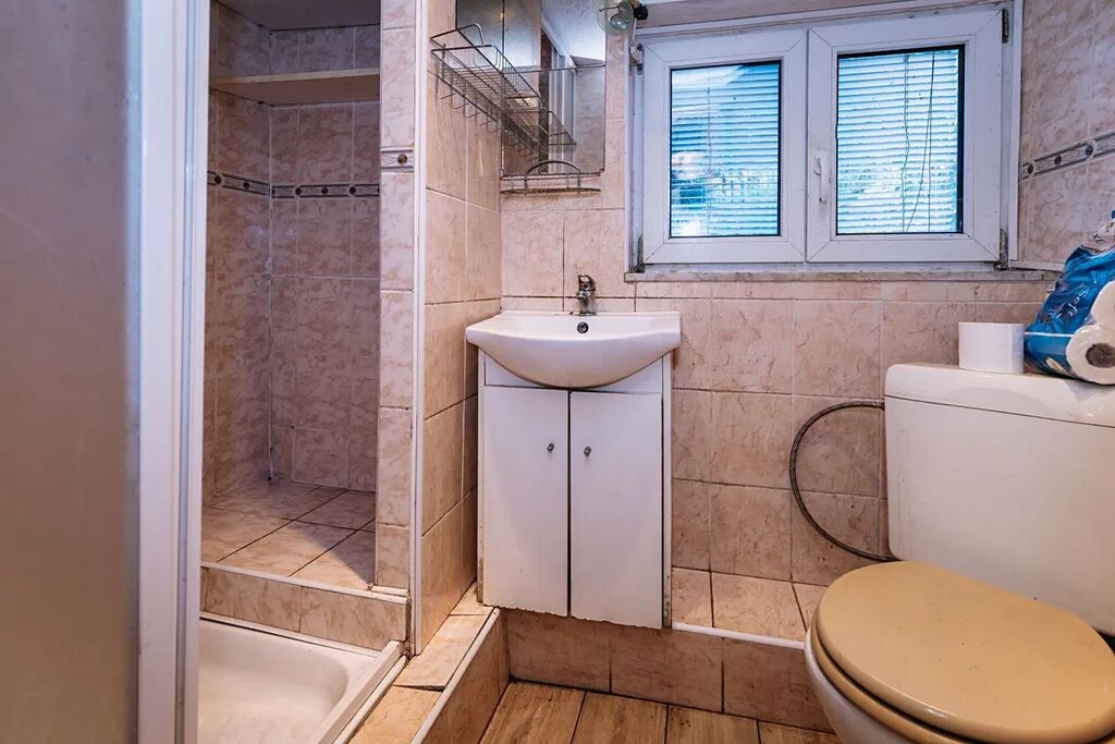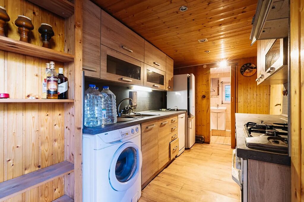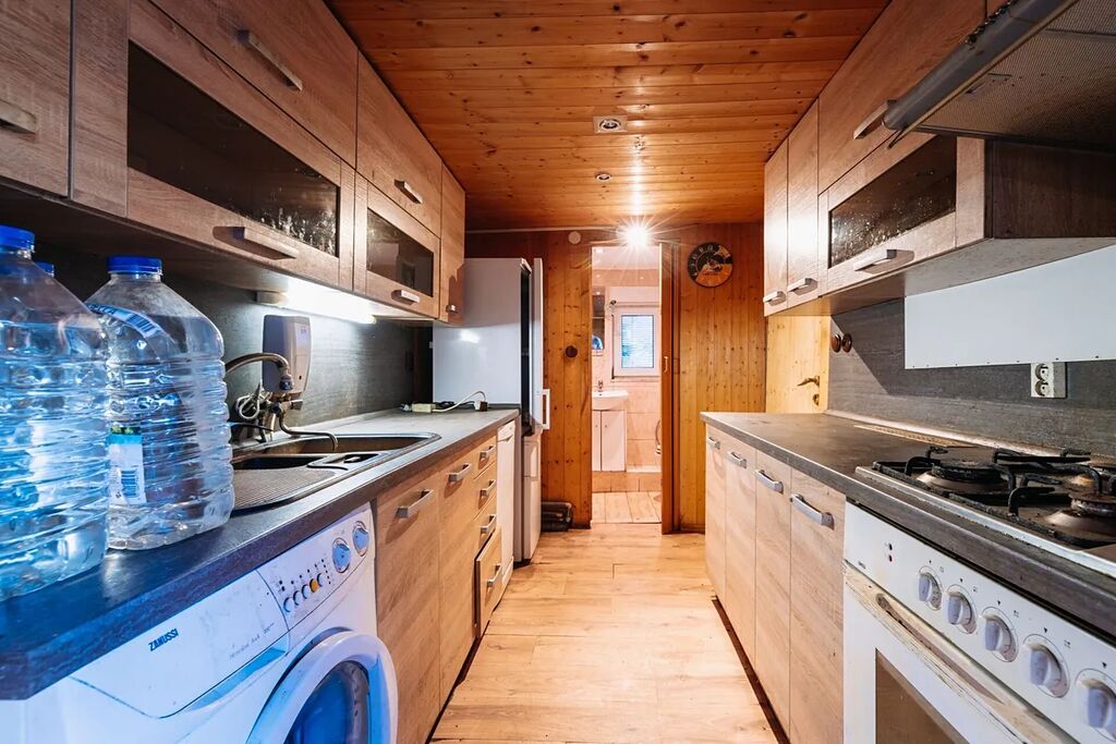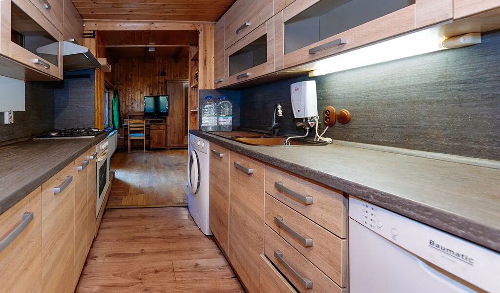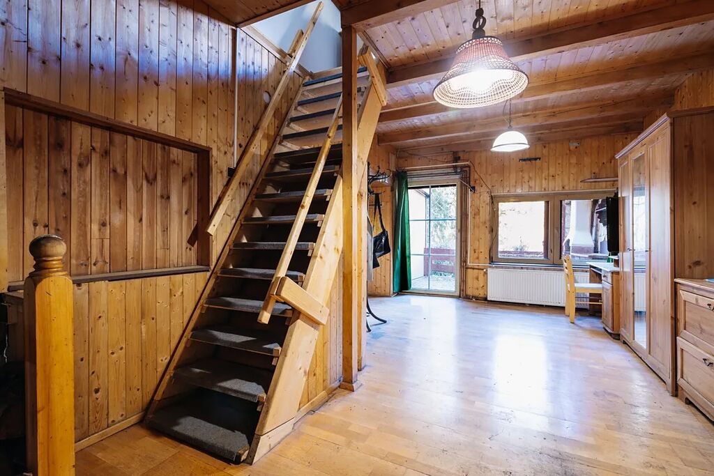 V přízemí se nachází prostorný obývací pokoj s krbem, který vytváří útulnou atmosféru, kuchyň v přírodním dřevěném stylu, koupelna s toaletou, dílna a kotelna, zádveří a garáž.