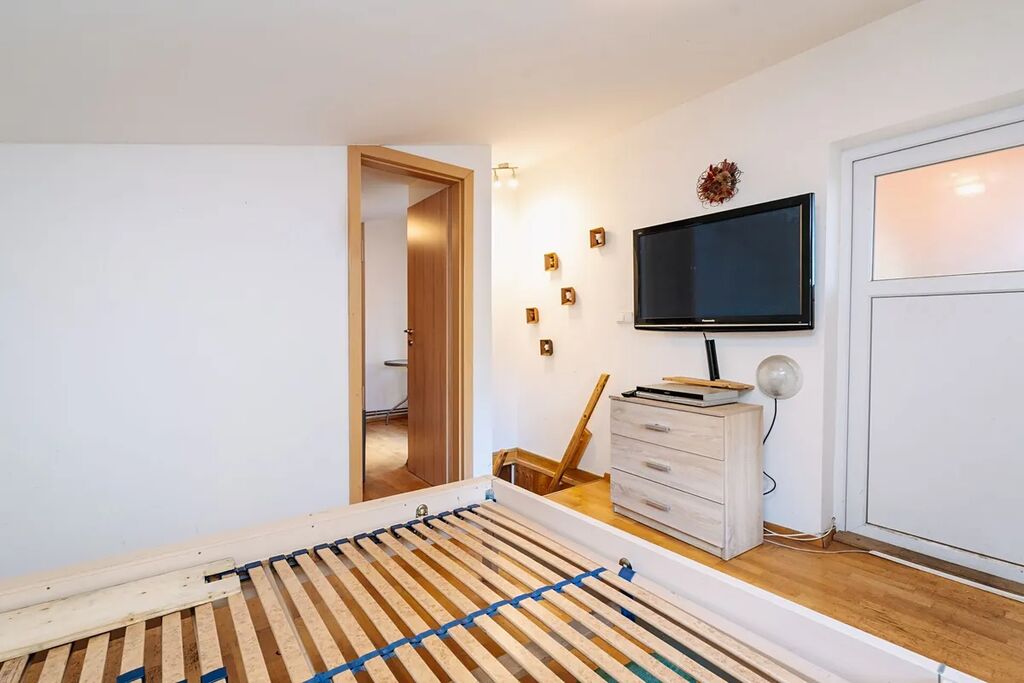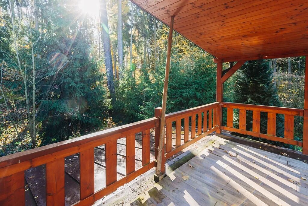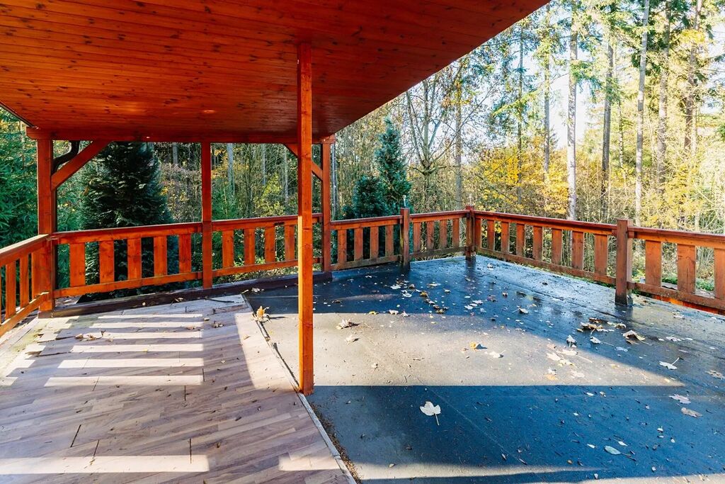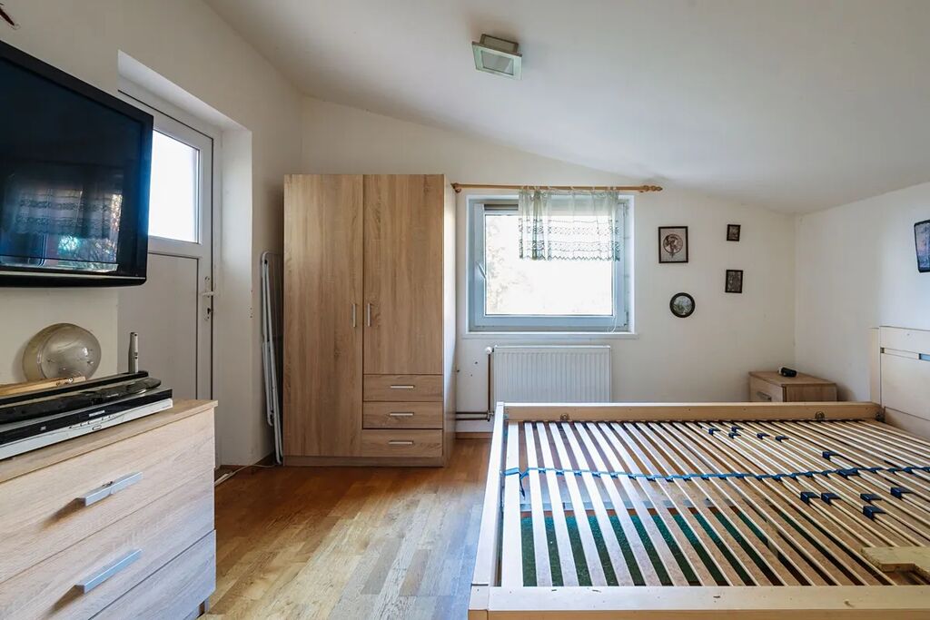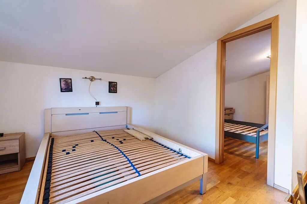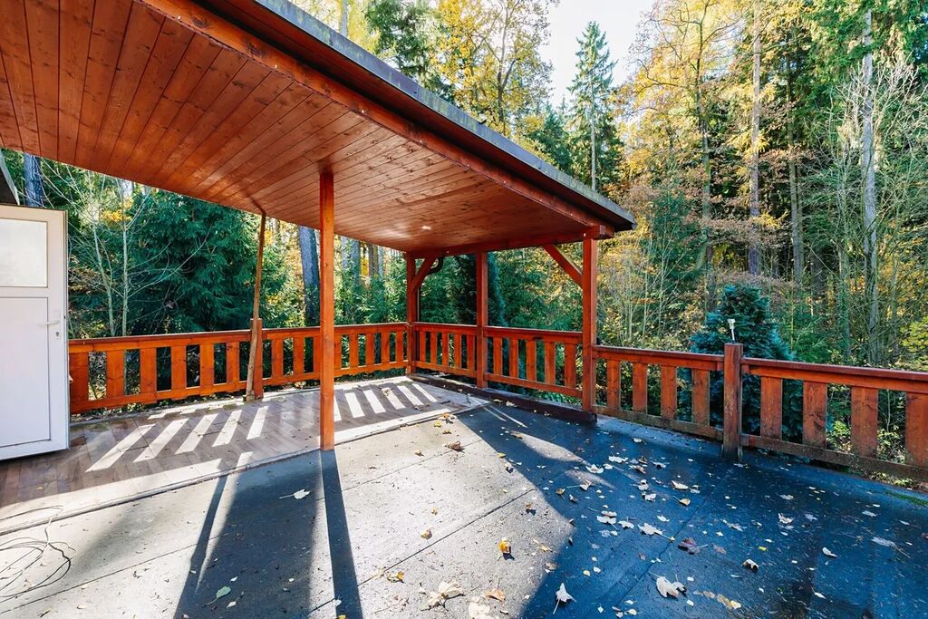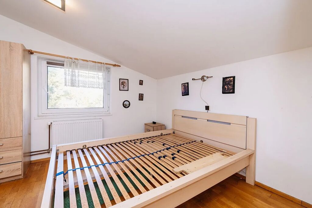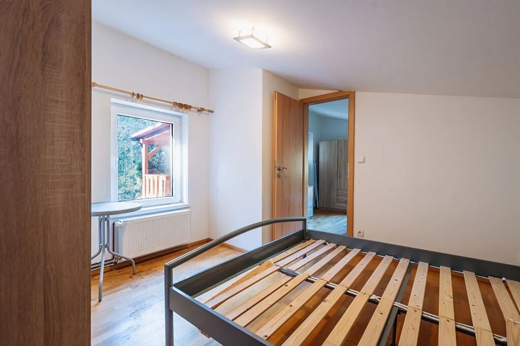 V patře se nachází dvě ložnice, přičemž z jedné je vstup na horní terasu (29,8 m²), která je částečně zastřešená a nabízí krásný výhled do okolních lesů a přírody.