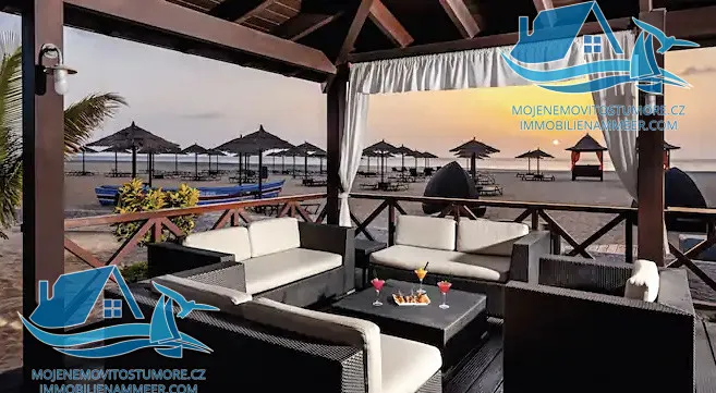 Nabízíme nádhernou vilu 153,8 m2 se čtyřmi ložnicemi v první linii u pláže! Vlastní zahrada a vlastní bazén. Unikátní investiční příležitost! Garantovaný výnos s možností využívání 5 týdnů v roce v rámci garantovaného výnosu. V době vlastní užívaní pro sebe nebo své hosté majitel ne platí energie, bazény, relaxační zóny, lehátka a slunečníky na pláži! Bezplatní prohlídky na místě! 47 týdnu v roce kompletní správa pronájmu. Bez poplatek na údržbu za předpokladu uzavření smlouvu na pronájem se správcovskou společnost! V případě, že majitel si nepřeje garantovaný vynos je poplatek na údržbu €327.18 měsíčně. Předpokládaný roční vynos 6-7%, garantovány výnos je 5%. Výběr dalších nemovitostí různých velikostí a dispozic v tomto a sesterských resortech. Ceny od € 150 000! Konkrétní popsána nemovitost je nádherná Villa v první linií v 5* resortu Tortuga Beach Resort na ostrově Sal, Kapverdy. Villa je dvoupodlažní, na pozemku o velikosti 288 m2, nádhernou terasu o velikosti 40.3 m2, a vlastní bazén.