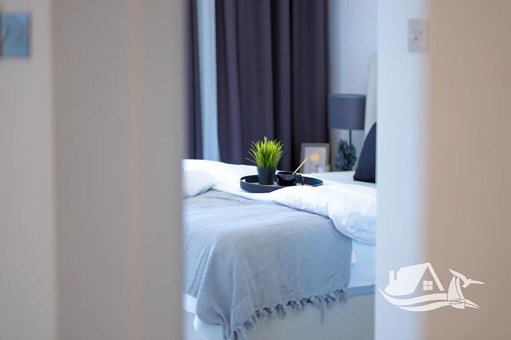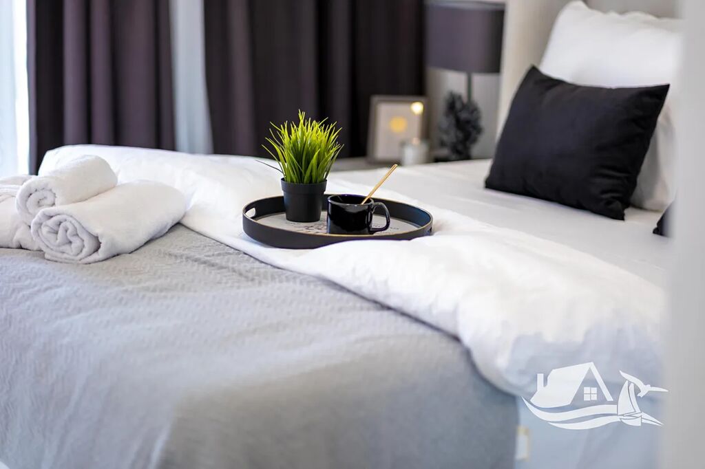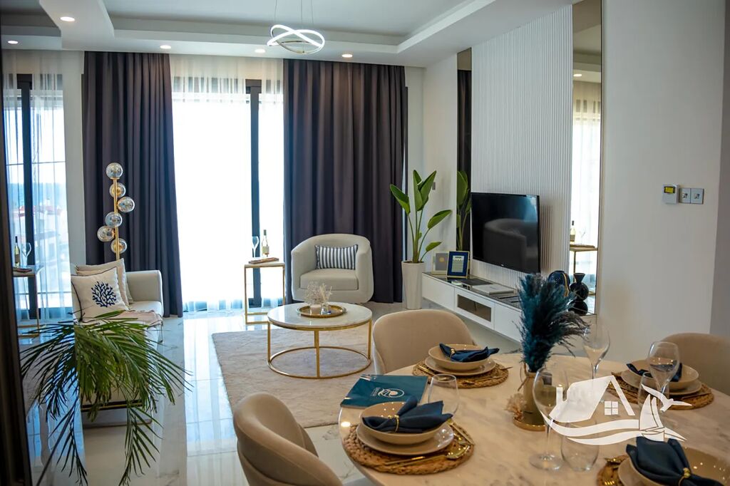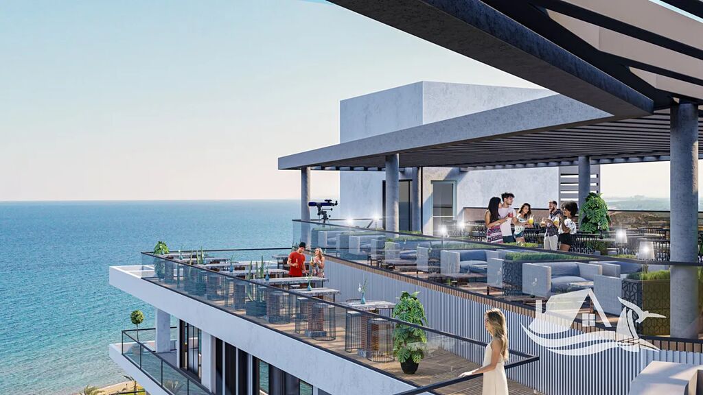 Moderní apartmán 3+kk s balkonem a krásným výhledem na moře a bazén. Nachází se jen pár kroků od pláže, nabízí soukromou pláž, venkovní bazén, fitness, sky bar a barbecue zónu.