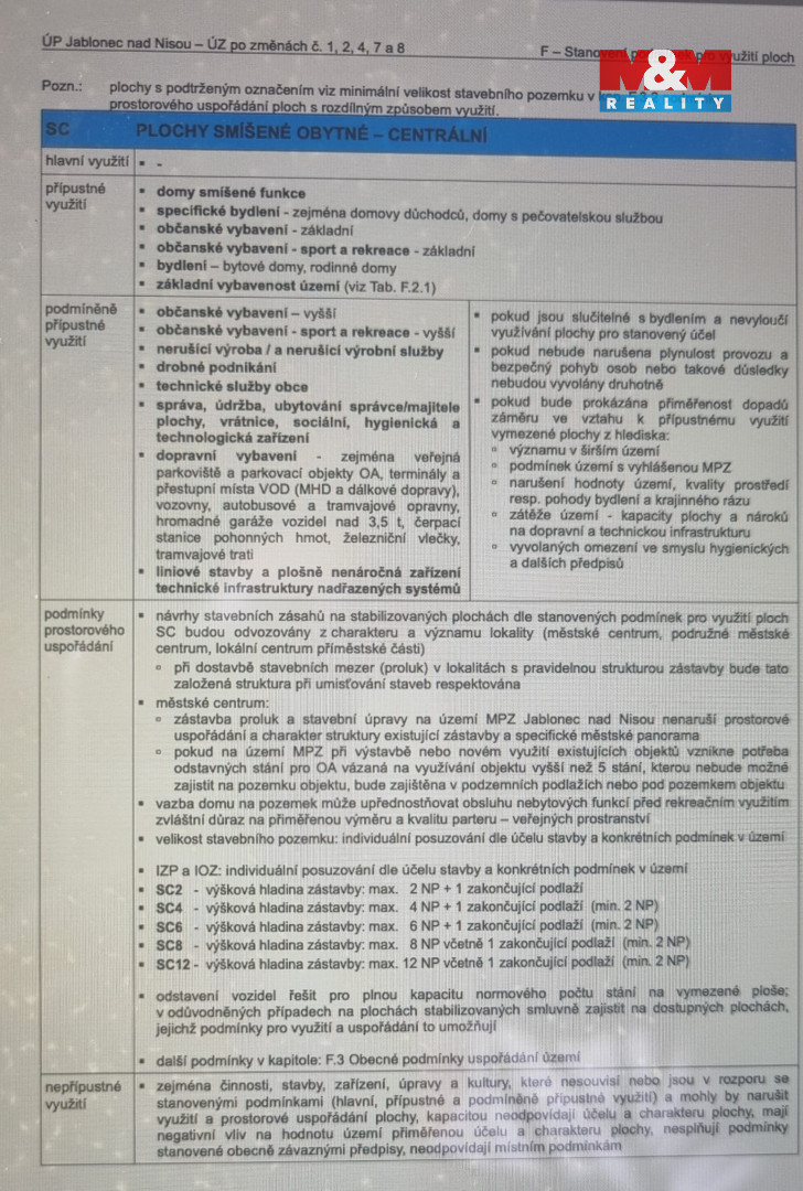 Možné využití: bytové a rodinné domy, specifické bydlení (domovy důchodců, pečovatelská služba), základní občanské vybavení, sport a rekreace, případně kombinace bydlení a podnikání dle územního plánu.