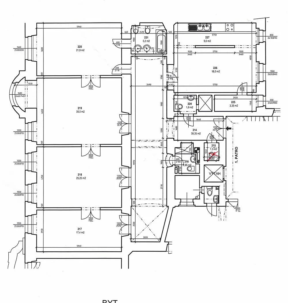Prostory jsou situovány v 1.patře renovovaného secesního domu s výtahem. Celková plocha činí 174 m2 a sestává z prostorné vstupní haly, 4 kanceláří, kanceláře s kuch. linkou, 2x koupelny a 3x WC. Při renovaci byly zachovány dobové prvky - masivní parkety, dvoukřídlé dveře, vysoké stropy se ozdobnými štukami a v poslední řadě originální kachlová kamna. . Kuch. linka je vybavena spotřebiči.
