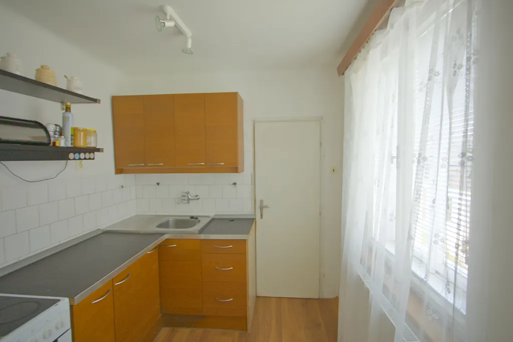V prvním patře je obývací pokoj(18,6 m2), ložnice(14 m2), kuchyně(5,6 m2), spíž(1,4 m2) velká chodba( 12,3 m2), wc s koupelnou(3,58 m2), zádveří(3,39 m2) a balkon. V podkroví je obytná kuchyně(16,4 m2) a jeden pokoj(9,3 m2) a balkon.