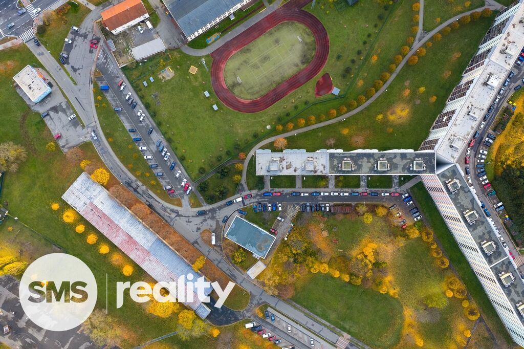 Panelový dům je v dobrém technickém stavu, má nový výtah, opravené společné prostory a vstup na čip.
