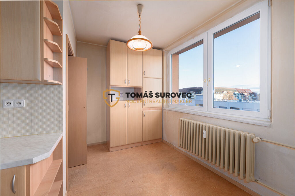 Dispozice bytu nabízí prostorný obývací pokoj, dětský pokoj a ložnici se vstupem na lodžii. Kuchyň je čistá, udržovaná a připravená na vaření. Elektřina je nově udělaná v kuchyni i koupelně, v ostatních místnostech zůstala původní. Byt má zděné bytové jádro. V koupelně najdete sprchový kout, umyvadlo a prostor na pračku. Toaleta je zvlášť – praktické řešení pro každodenní život.