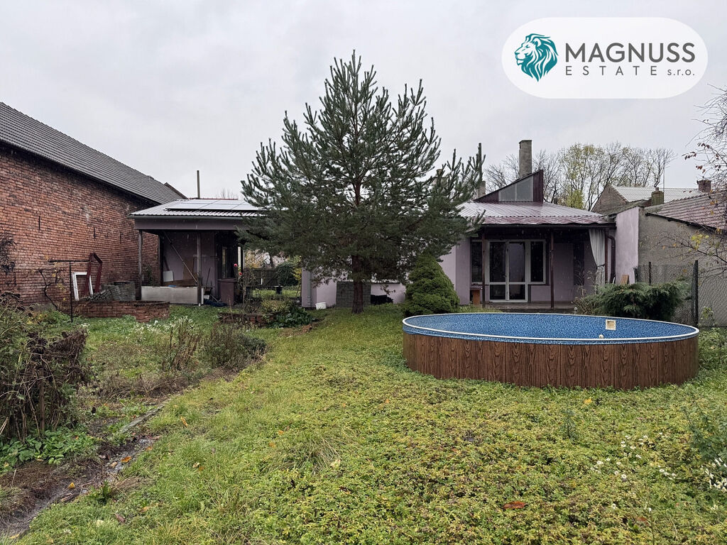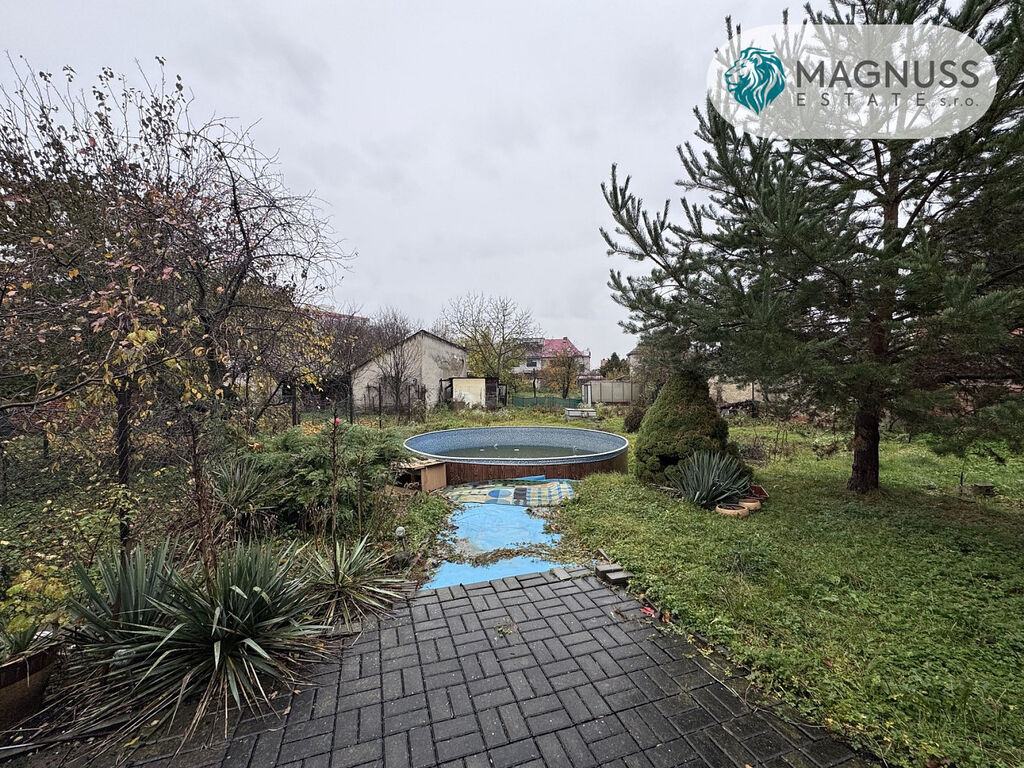 Součástí nemovitosti je bazén, garáž pro dva automobily a zahrada před i za domem, která nabízí dostatek místa pro relaxaci i volnočasové aktivity.