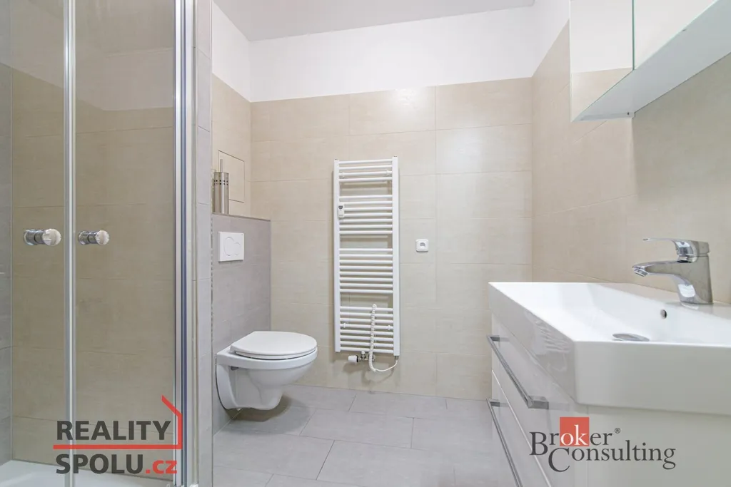Další koupelna se nachází u vstupu do bytu a je prakticky dostupná pro hosty i rodinu.