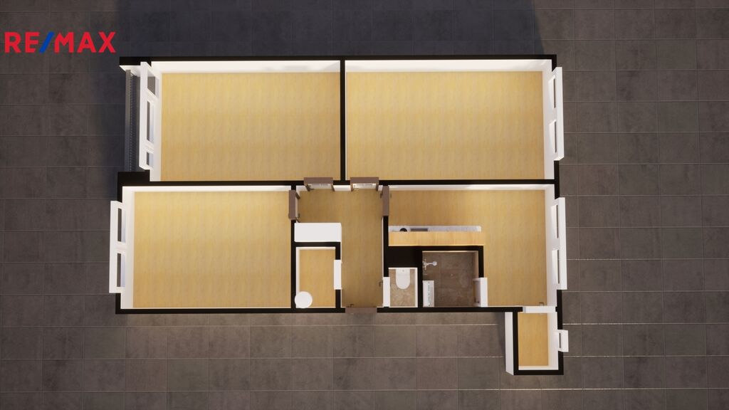 Interiér je před rekonstrukcí, což vám dává jedinečnou možnost vytvořit si domov přesně podle svých představ. Orientace na východ a západ zajišťuje dostatek slunce po celý den. K bytu náleží sklepní kóje.