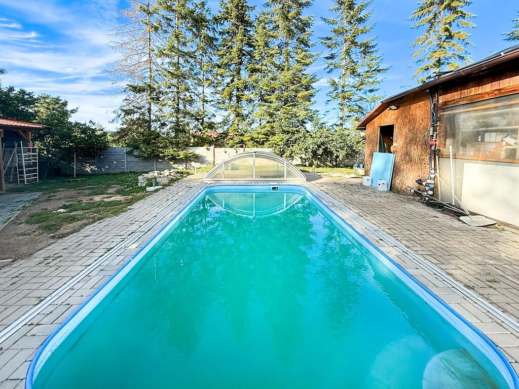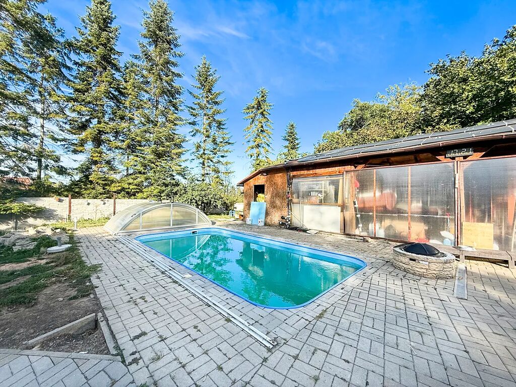 Na pozemku o velikosti 643 m2 se nachází bazén 3 x 6 m se zakrytím, dílna 35 m2, navazující vnitřní pergola 22 m2 s otevíracími elektrickými vraty a pergola 32 m 2. Dále je též na pozemku krytá garáž pro 1 větší auto 32 m2 (8 x 4 m) a navazující sklad 12 m2.