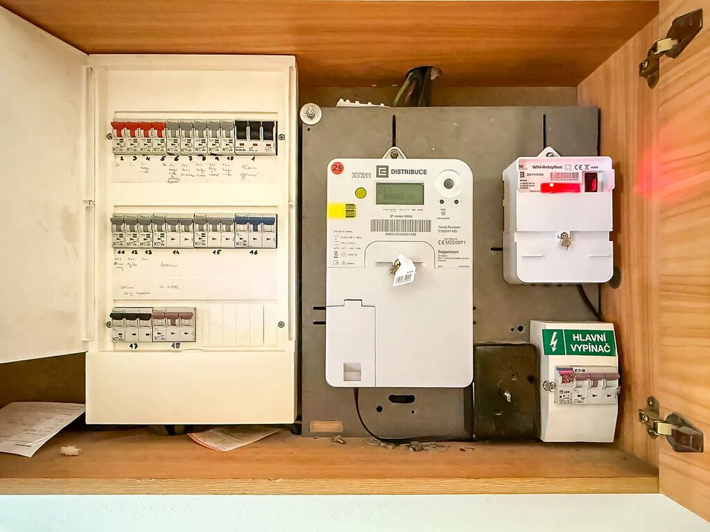 - vytápění LTO (2 nádrže v suterénu domu – malá spotřeba), průtokový ohřívač se zásobníkem, elektrokotel, MITSUBISHI jednotka klimatizace, tepelné čerpadlo, v OP zaslepený komín pro krb, dílna radiátor a krb v pergole