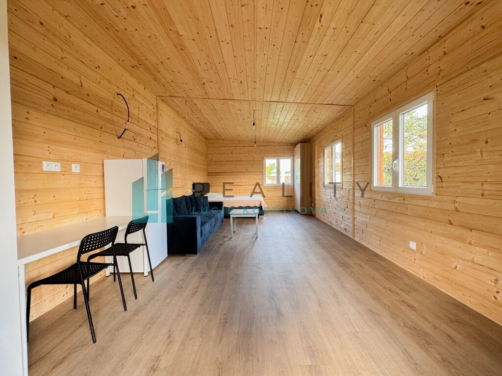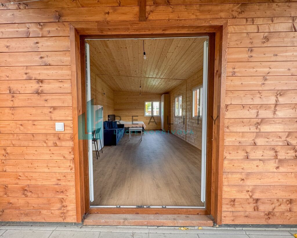 * Dřevěný montovaný domek s plochou okolo 32m2. Instalace tohoto domku byla dokončena v roce 2025.