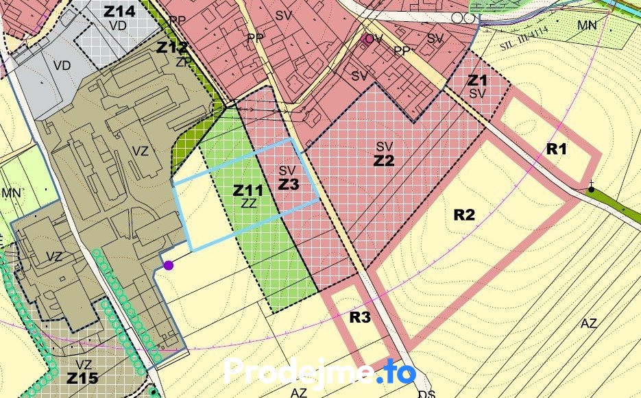 Přední část o rozloze cca 3 400 m2 je dle územního plánu vedena jako plocha smíšená obytná venkovská (SV). Nachází se zde vodovod a kanalizace s již vybudovanými pěti přípojkami. Elektřina by měla být k dispozici do jara 2026. Díky přímému přístupu z obecní asfaltové cesty je tato část ideální pro parcelaci na stavební pozemky nebo menší developerský projekt.