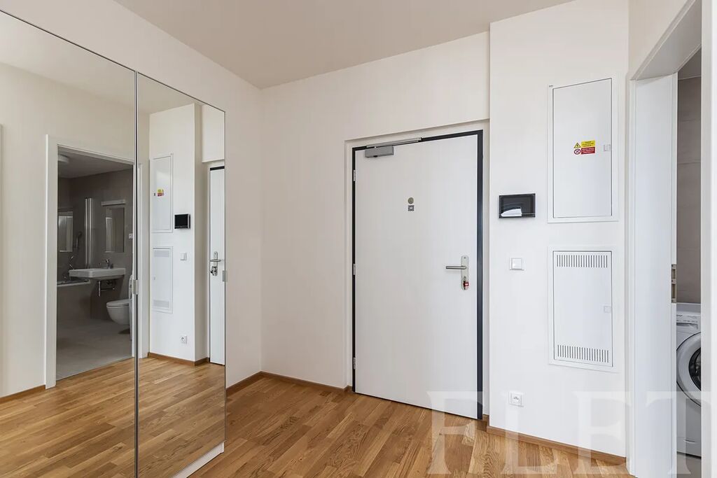 Byt nabízí praktickou dispozici a příjemnou atmosféru. Součástí je plně vybavená kuchyňská linka s lednicí, troubou, myčkou, digestoří a samozřejmě i pračka. Díky velkým oknům je interiér krásně prosvětlený po celý den.