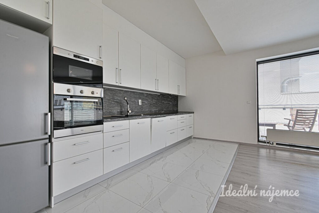 K prodeji nabízíme ateliér o dispozici 3+kk o celkové rozloze 144,8 m², který se nachází v 5. patře cihlového domu s výtahem. Samotná podlahová plocha činí 77,8 m², k bytu dále náleží sklep o velikosti 14 m², prostorná terasa 62 m² a parkovací stání v garáži, které je již zahrnuto v ceně. Byt se prodává vybavený dle fotografií.