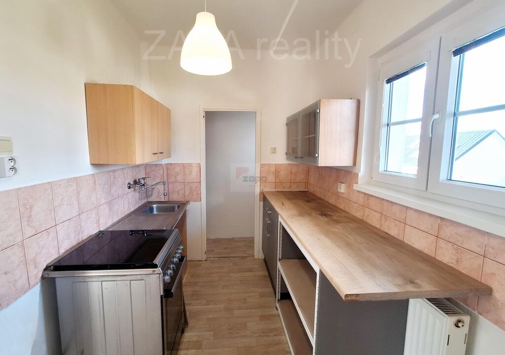 Byt je světlý se severozápadní a jihovýchodní orientací s výhledem do nové zástavby rodinných domů.