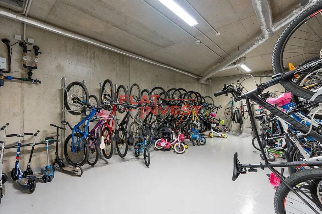 V domě je praktická kolárna s mycím boxem (vapka). K bytu náleží parkovací stání v podzemní garáži a prostorný sklep.