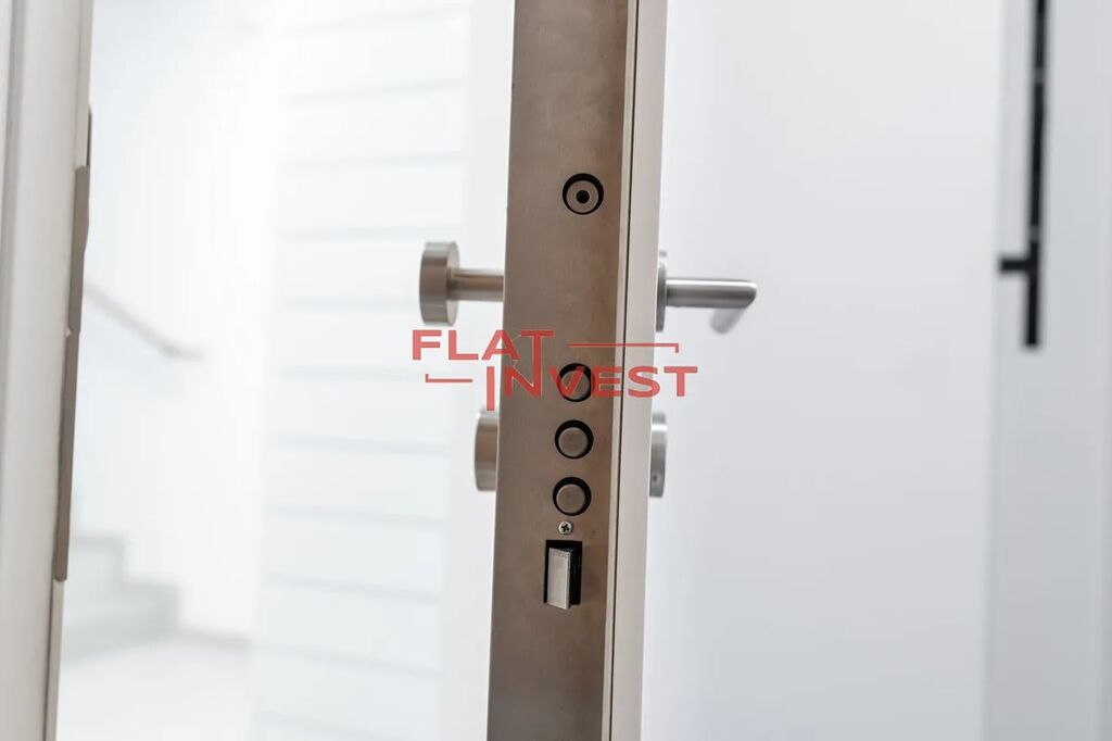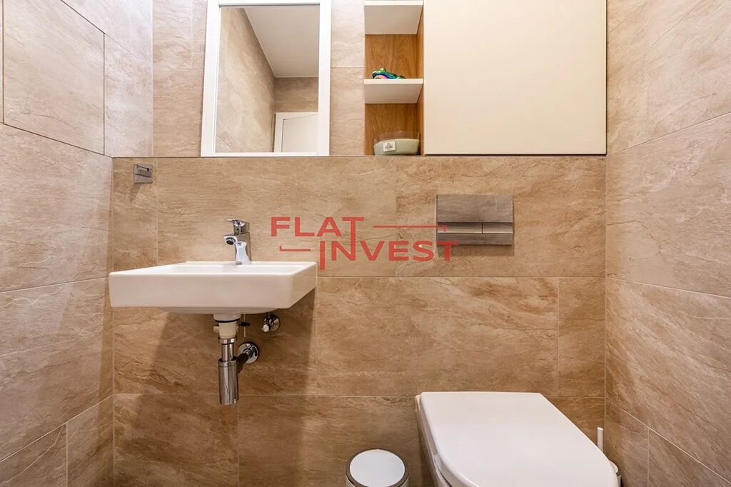 Koupelna má podlahové vytápění, vanu, WC, pračku a sušičku; k tomu druhé samostatné WC. Ze všech pokojů je vstup na terasu s ratanovým posezením pro 4 osoby a houpacím křeslem – ideální pro ranní kávu i večerní relax s výhledy. O komfort se starají vstupní bezpečnostní dveře (třída 3), videotelefon a elektrické rolety ve všech oknech, které umožňují dokonalé zastínění celého bytu.