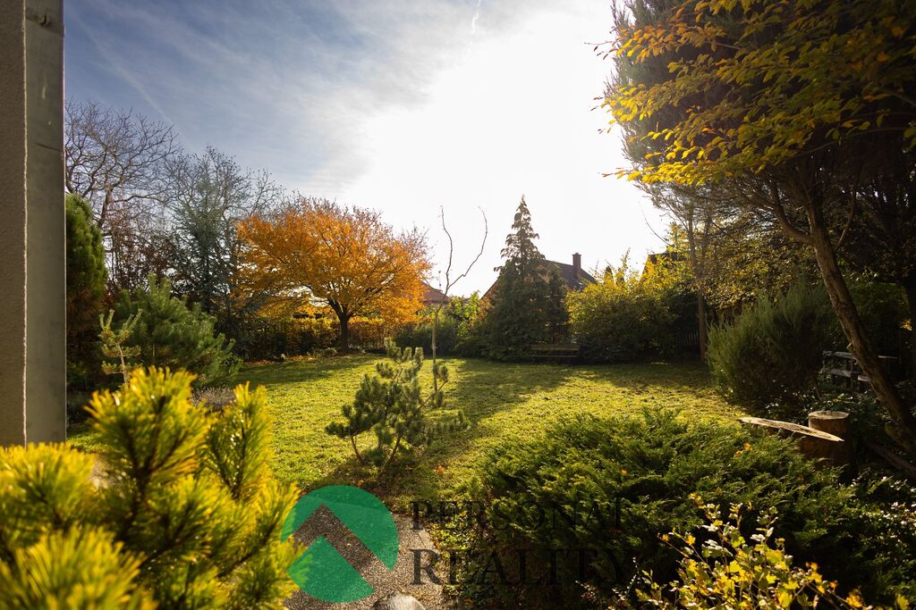 Jižně orientovaná zahrada je upravena podle Feng shui a opírá se o principy permakulturniho pěstování rostlin, s respektem k jejich přirozenými vztahům a potřebám, aby jako celek dobře prosperovala a poskytovala v každém ročním období maximum vizuálního potěšení. Zahrada poskytuje díky velikosti a zeleni dostatek soukromí. Nachází se zde zahradní technická místnost a zastřešené venkovní posezení.