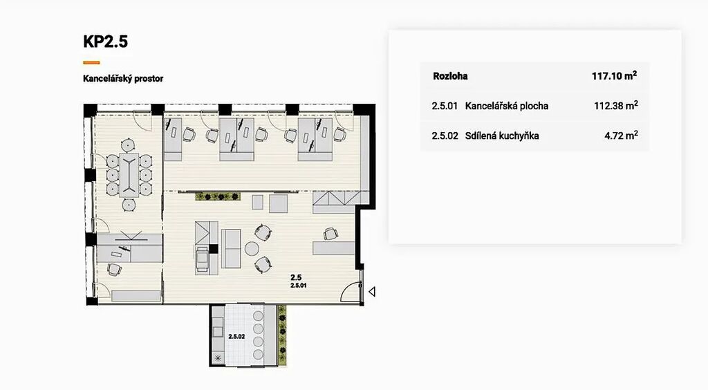 • 112,38 m², pronájem ve stavu shell & core, připravená pro adaptaci podle potřeb nájemce.