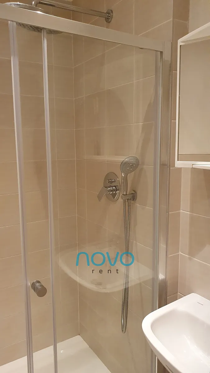 Byt má koupelnu se sprchovým koutem dále pak samostatné WC, prostorný samostatný pokoj s velkou vestavnou skříní, kuchyni s východem na balkon a komoru s pračkou. K bytu je ještě k dispozici sklepní kóje.