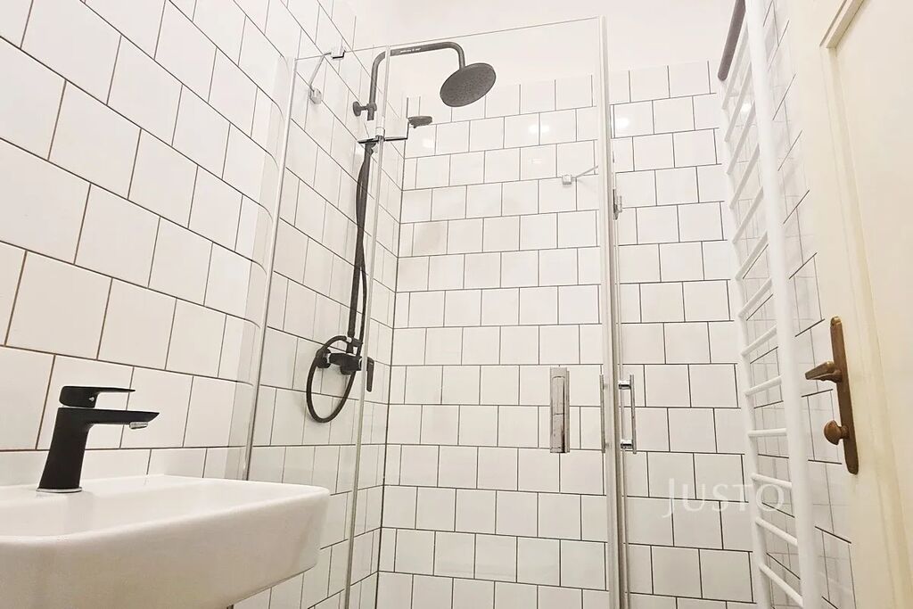 Charakter bydlení podtrhují velkorysé repliky původních prvorepublikových dveří, velká špaletová okna, dřevěná podlaha, dobová koupelna i nová kuchyňská linka s vestavnými spotřebiči.