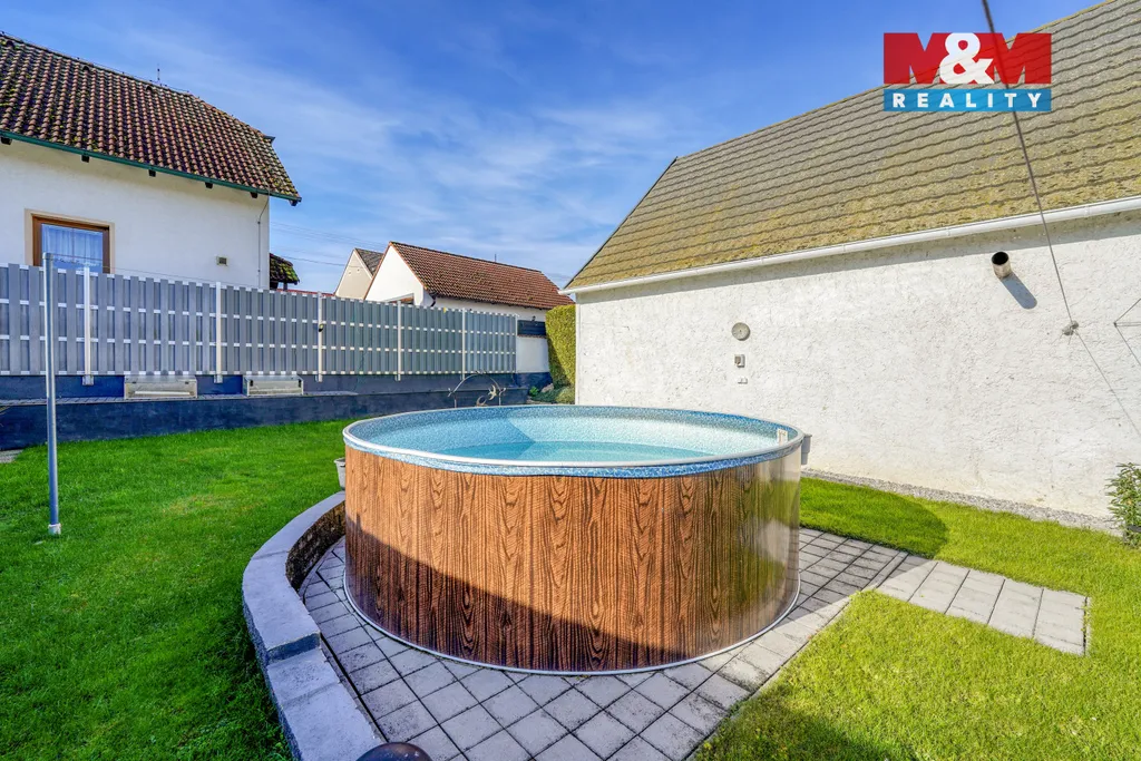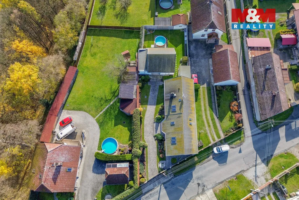 Velkou výhodou je hospoda s odděleným vchodem, prostorná garáž o výměře 91 m2, pergola pro příjemné posezení a venkovní bazén.