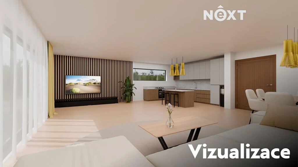 Rodinný dům č. 1 je již prodaný a právě máte příležitost koupit dům č.2, který nabízí mimořádně komfortní a nadstandardní bydlení. Dům má smysluplně řešený půdorys. V přízemí Vás přivítá prostorné zádveří (5,43 m²), na které navazuje chodba (5,14 m²), pracovna nebo ložnice chcete-li (9,69 m²), koupelna se sprchovým koutem a toaletou (4,69 m²) a technická místnost/sklad (2,10 m²). Dominantou přízemí je nadstandardně prostorný obývací pokoj s kuchyní o celkové užitné ploše 34,84 m² se vstupem na terasu (13,8 m²) a zahradu (174,2 m²). Do prvního patra (2.NP) vede pohodlné schodiště (6 m²). V patře se nachází klidová zóna o 3 pokojích. Ložnice (17,25 m²) s praktickou šatnou, další pokoj (14,53 m²) se šatnou a třetí pokoj (15,6 m²). Dále se zde nachází koupelna s vanou a toaletou (7,24 m²), vše spojeno chodbou (5,04 m²). Každý metr čtvereční zde má své opodstatnění. Dům je navržen tak, aby odpovídal potřebám moderní rodiny a nabízel jak prostor pro společný život, tak klid a soukromí. Na stavbu jsou použity kvalitní materiály s důrazem na design a dlouhou životnost. V ceně domu jsou zahrnuty interiérové dveře a zárubně, dlažby, sanita v koupelnách značky Hans Gröhe, podlahy Alpha Vinyl a kastlíky s přípravou na venkovní žaluzie. Do ceny domu je dále zahrnuta terasa za domem, nezámrzný venkovní kohout na vodu, oplocení a zídka mezi domy. Kuchyňskou linku, osvětlení, nábytek, pergolu a žaluzie si řešíte na vlastní náklady. Součástí inzerátu jsou vizualizace interiéru, které pomohou s představou, jak by mohl Váš nový domov mohl vypadat. Provoz domu je nízkoenergetický, vytápění je řešeno kondenzačním plynovým kotlem včetně ohřevu vody. V celém domě je podlahové vytápění. Energetický štítek (PENB) třídy B. Dům je napojený na kanalizaci, elektřinu a veřejný vodovod.