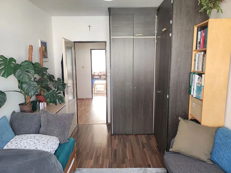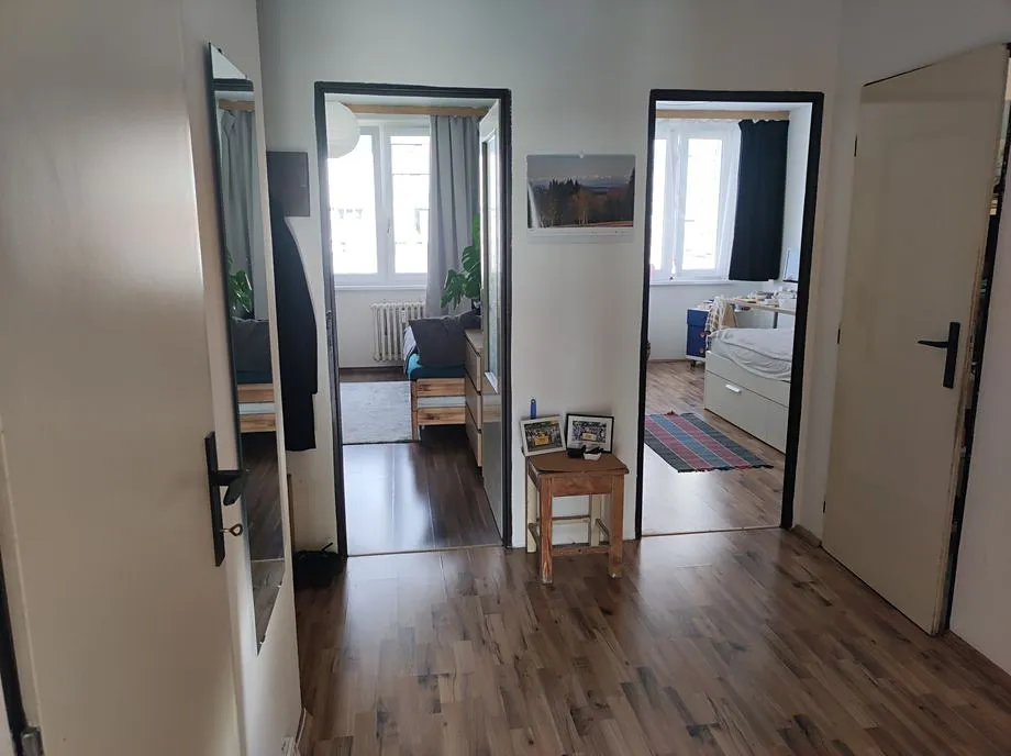 Jedná se o světlý byt s balkonem v 6. patře panelového domu, který se nachází u metra Pražského povstání. Je vybavený kuchyňskou linkou se sporákem, lednicí, pračkou a základním nábytkem (některý nábytek na fotkách je současných nájemníků). Oddělené pokoje. Na podlaze jsou plovoucí podlahy a dlažba. Koupelna s vanou, WC je samostatně. Komora. Plastová okna. Kabelová TV. Kauce i provize činí 23.000, Kč.
