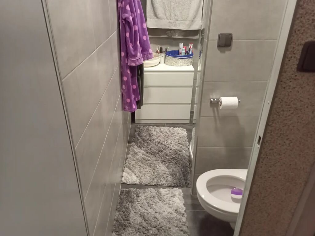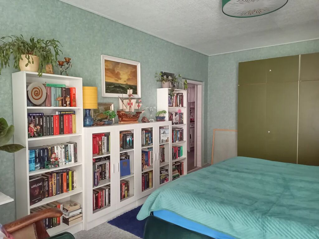 Jedná se tak o velmi prostorný byt se vstupní chodbou s oddělenou šatnou osazenou za vstupem na chodbě. Byt se skládá ze vstupní chodby se vstupem do samostatné komory a do WC s navazující koupelnou umístěné proti komoře. Na konci chodby jsou v čele chodby tři vstupy z toho napravo do samostatné pracovny a samostatné ložnice s lodžií a nalevo pak do kuchyně s jídelnou a vstupem do obývacího pokoje. Koupelna je upravená se sprchovým koutem a umyvadlem. Byt je ve velmi dobrém stavu s postupnou rekonstrukcí a vybavením včetně kuchyňské linky, úpravy podlah (vinil,PVC), rekonstrukcí koupelny, úpravy povrchů…. .