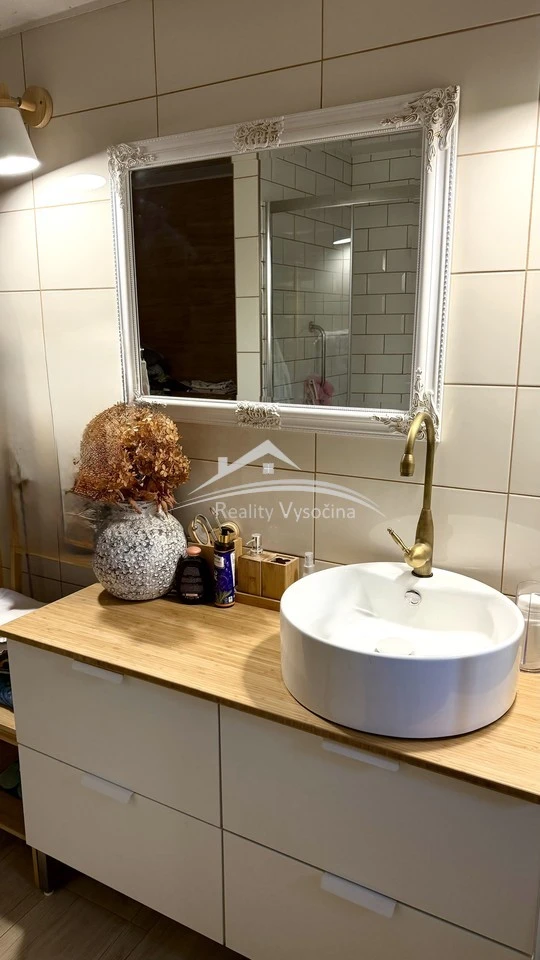 Na jižně orientované zahradě se nachází kruhový bazén o průměru 3,6 m a hloubce 1,15 m a také pěkná zastřešená pergola pro příjemné posezení. Dům prošel rozsáhlou rekonstrukcí – kolem celého domu byly provedeny drenáže, vyměněna střešní krytina za pálenou tašku, kompletně byly zrekonstruovány rozvody elektřiny v mědi (220/380 V) s oddělenými okruhy pro každou bytovou jednotku, dále byly vyměněny rozvody vody a odpadů za plastové a osazena nová plastová okna s izolačním dvojsklem. Vytápění zajišťuje kombinovaný plynový kotel s ohřevem teplé vody a v obývacím pokoji jsou navíc krbová kamna s novou nerezovou vložkou, která poskytují příjemné přitopení v chladnějších dnech.