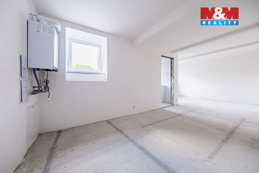 Součástí prostoru je plynový kotel, který zajišťuje vytápění celého domu.