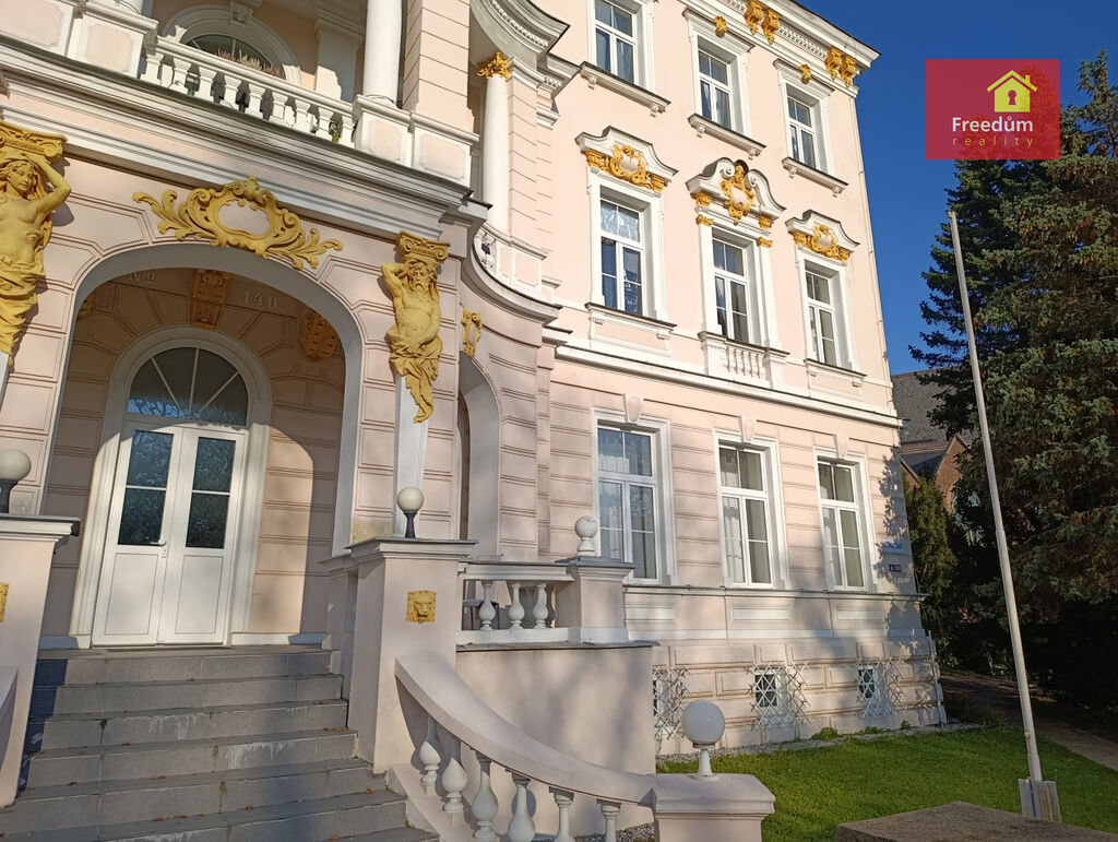 Prostorný vybavený byt v prvním podlaží vily, osobní vlastnictví. Obývací pokoj je spojen s kuchyn, ložnice a šatna, k dispozici je koupelna se sprchovým koutem a WC. Byt se prodává zařízený. K bytu náleží větší místnost ve sklepě o velikostí 26 m2.